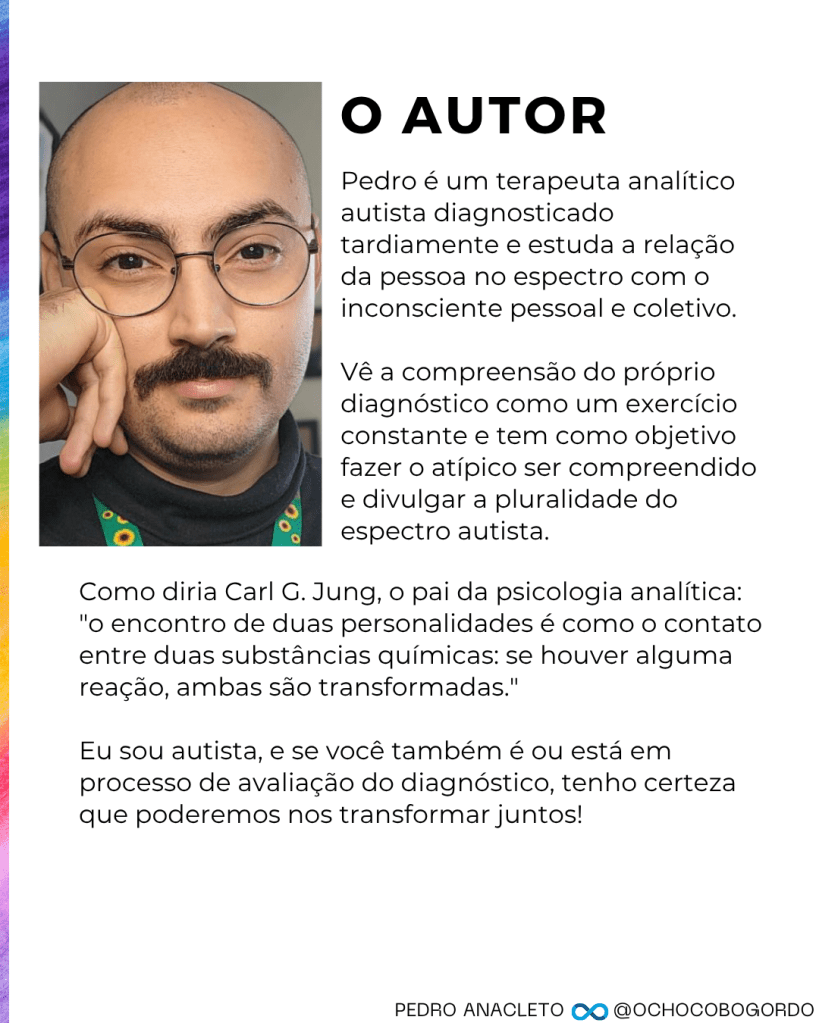 “Eu sou hipossensível aos estímulos olfativos. Isso não quer dizer que eu não sinta o cheiro das coisas, eu sinto, mas na maioria das vezes sou incapaz de processar essa informação. Não consigo relacionar o perfume às pessoas e não sei identificar se uma roupa está imprópria para o uso pelo cheiro, ou se um alimento está estragando. Geralmente os cheiros não me incomodam, porque eu não percebo, mas às vezes eu entro em pânico porque o vizinho usou um tempero diferente na comida e eu penso que pode estar acontecendo algo perigoso, como gás vazando ou algo queimando, mas eu não sou capaz de identificar isso sozinho. O padrão de hipossensibilidade aos estímulos olfativos me acompanha por toda a vida, mas tenho crises pontuais que me deixam hiperreativo aos mesmos estímulos.” – Pedro Anacleto