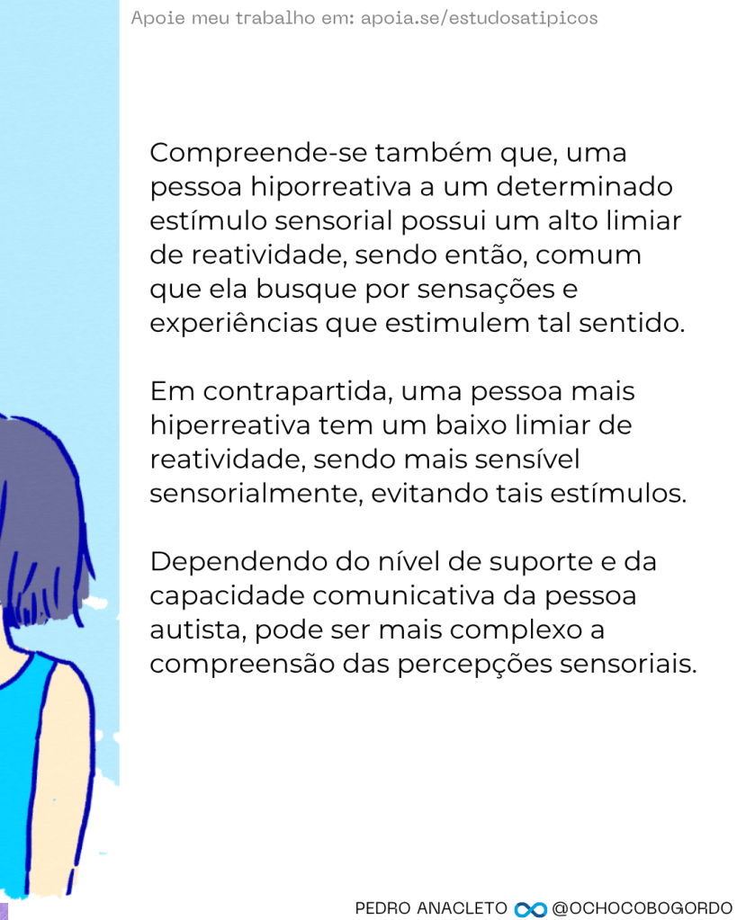 Uma pessoa hiporreativa a um determinado estímulo sensorial, possui um alto limiar de reatividade, então é comum que ela busque sensações que estimulem tal sentido, enquanto uma pessoa hiperreativa possui um baixo limiar de reatividade, sendo mais sensível sensorialmente e evitando tais estímulos.